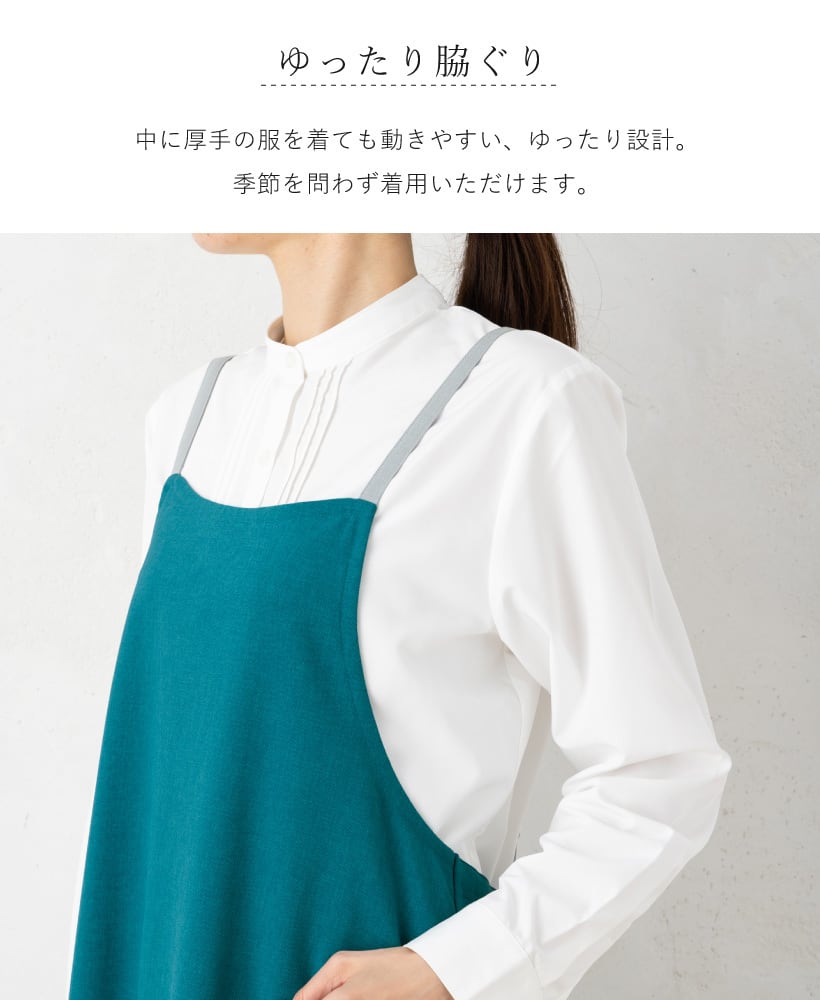 安心の日本製!ノンアイロンでお手入れ簡単!ふわりと広がるH型エプロン。女性らしい華奢な印象の肩紐が、本体生地とバイカラーデザインでおしゃれな雰囲気に。肩に負担をかけにくいH型のデザインで、洗濯後もしわになりにくいノンアイロン生地を採用しています。デザインやサイズ感にこだわった、丁寧な作りの日本製エプロン。 工場直営のエプロン専門店 エプロンストーリー ならではの高品質エプロンは、ギフトやプレゼントにも最適です。