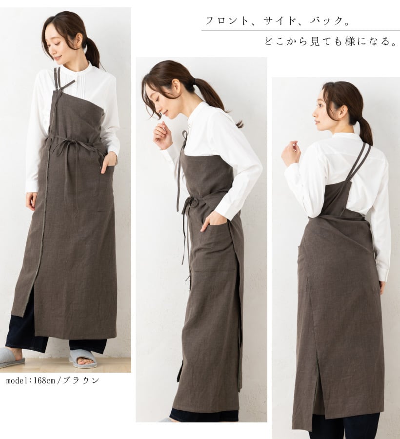 着たままお出かけできる、ロング丈のワンショルダーエプロン!起毛を施した柔らかな風合いのリネン素材を使用した、気取りすぎず日常使いしやすいデザイン。宅配便の受け取りや、ちょっとお買い物に行きたいときに着替える手間が省けます◎ もちろんデザインだけでなく、機能性にもこだわりました。暮らしに寄り添うリネン素材専門ブランド『UNDEUX RIRE(アンドゥリール)』が手掛ける高品質な日本製エプロン。ギフトやプレゼントとしてもおすすめです。