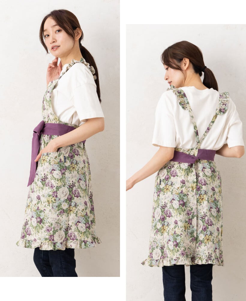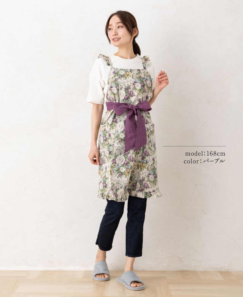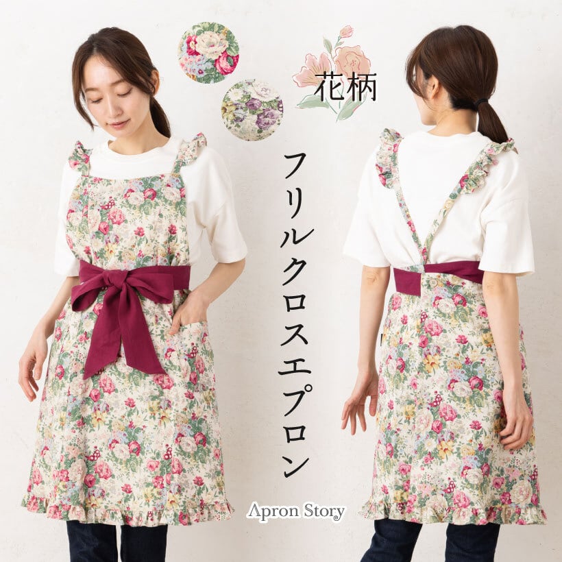 【K1885-HH】花柄フリルクロスエプロン【ラッピング無料】【母の日ギフト】