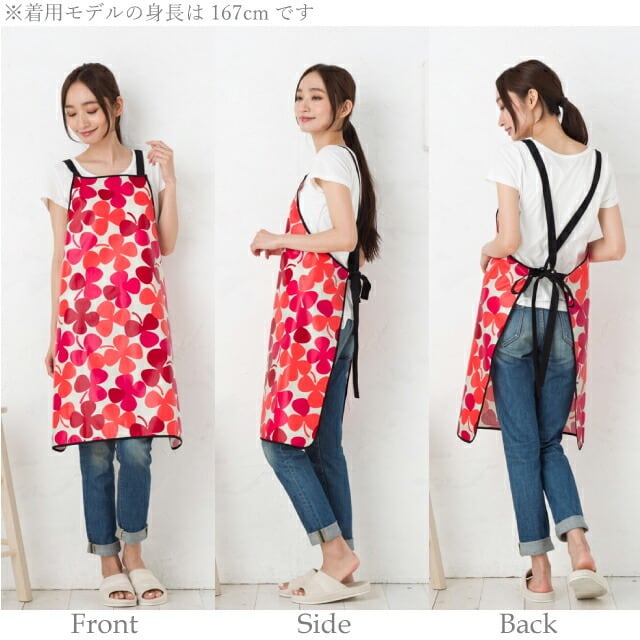【OS0009】ラミネート加工生地使用クローバー柄トリミング用エプロン