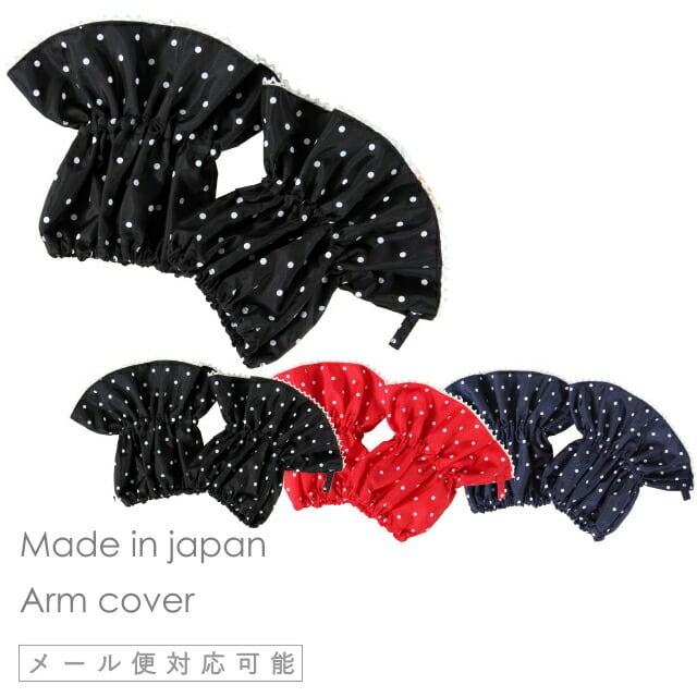 お掃除や、洗物等の家事の時に洋服の袖を汚れから守る、ドット柄とプチレースがかわいい撥水・防水タイプのアームカバーです。程よい締め付け感とコンパクトな長さがつけやすいアームカバーです。台所の等のフックにかけられるループ付です。