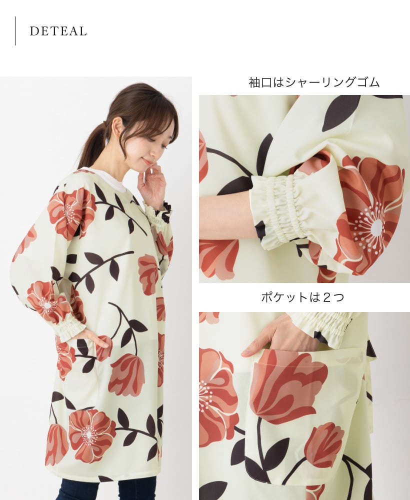 【A0117-HH】 イージーケア フラワー割烹着